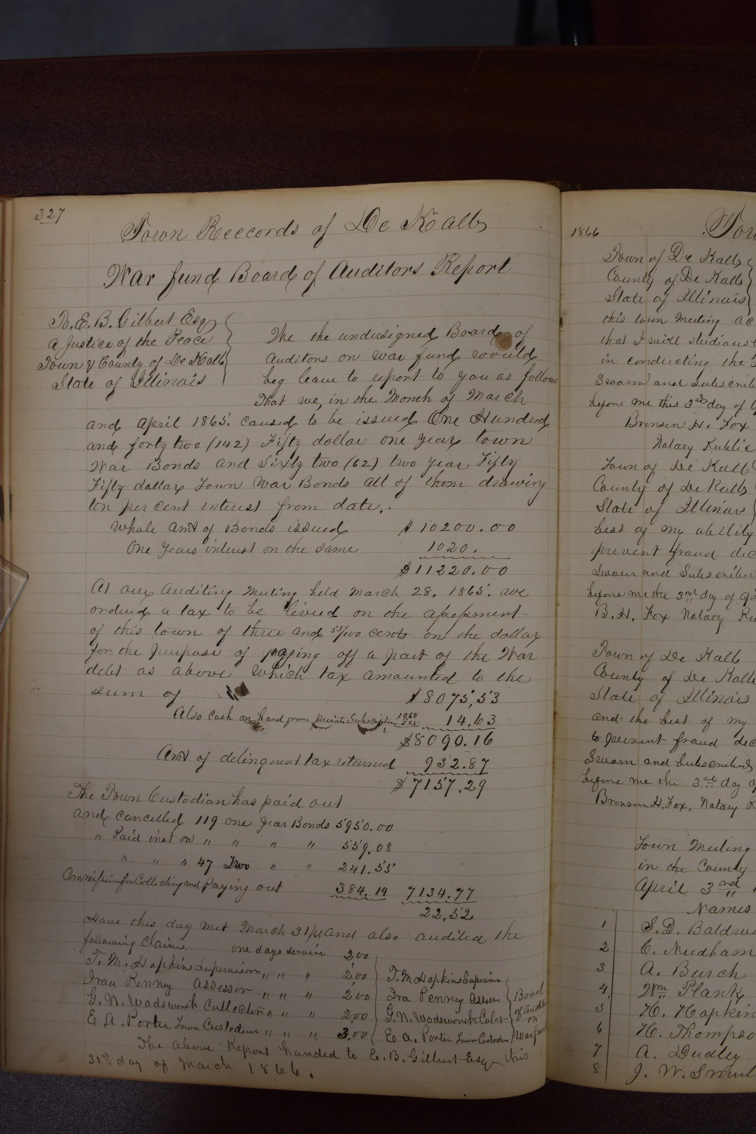 Town Records of DeKalb Ill page 327, 1866