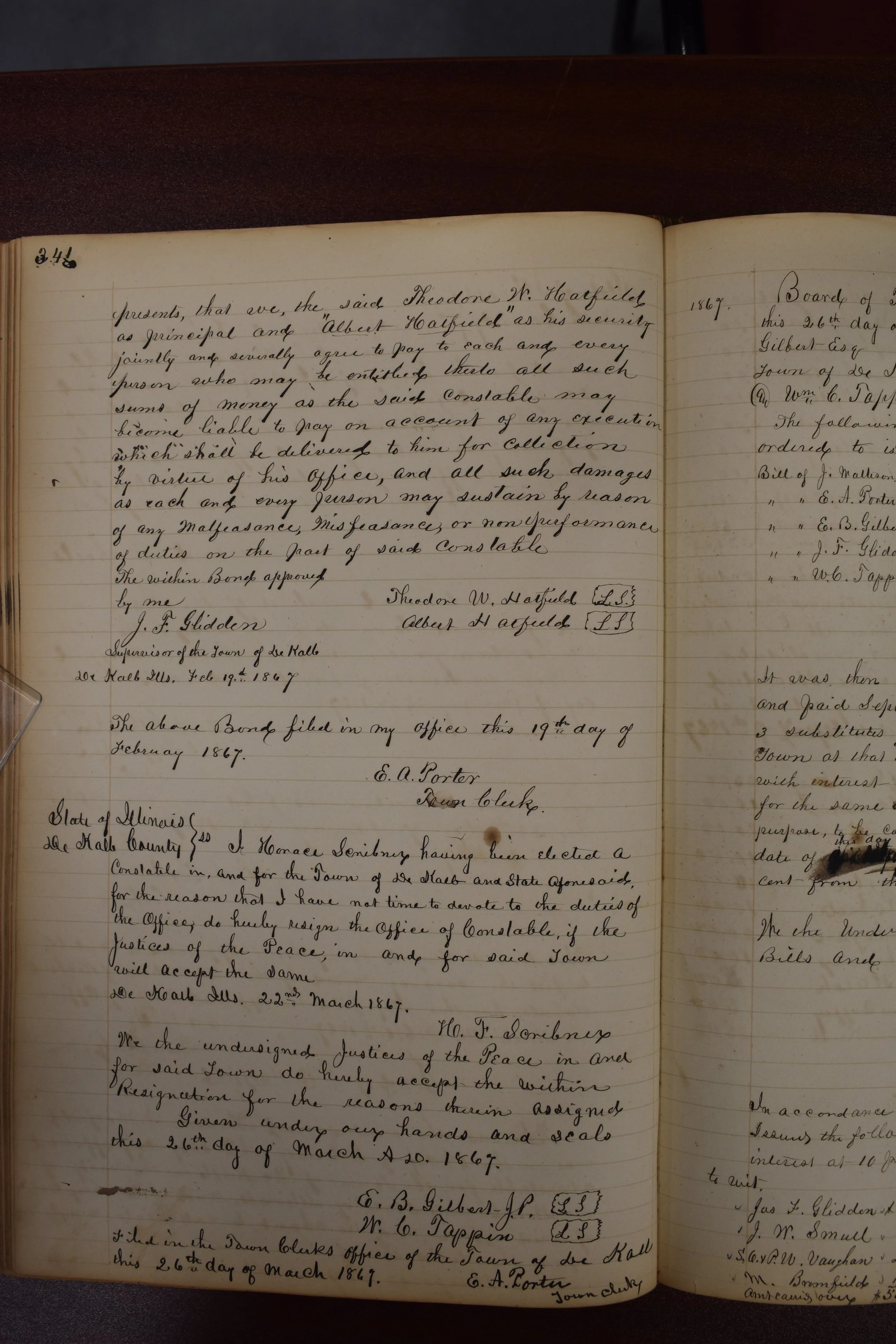 I, Horace Scribner having been elected a Constable in and for the town of DeKalb and state aforesaid for the reason that I have not time to devote to the duties of the office, do hereby resign the office of Constable if the Justices of the Peace, in and for said town will accept the same.
