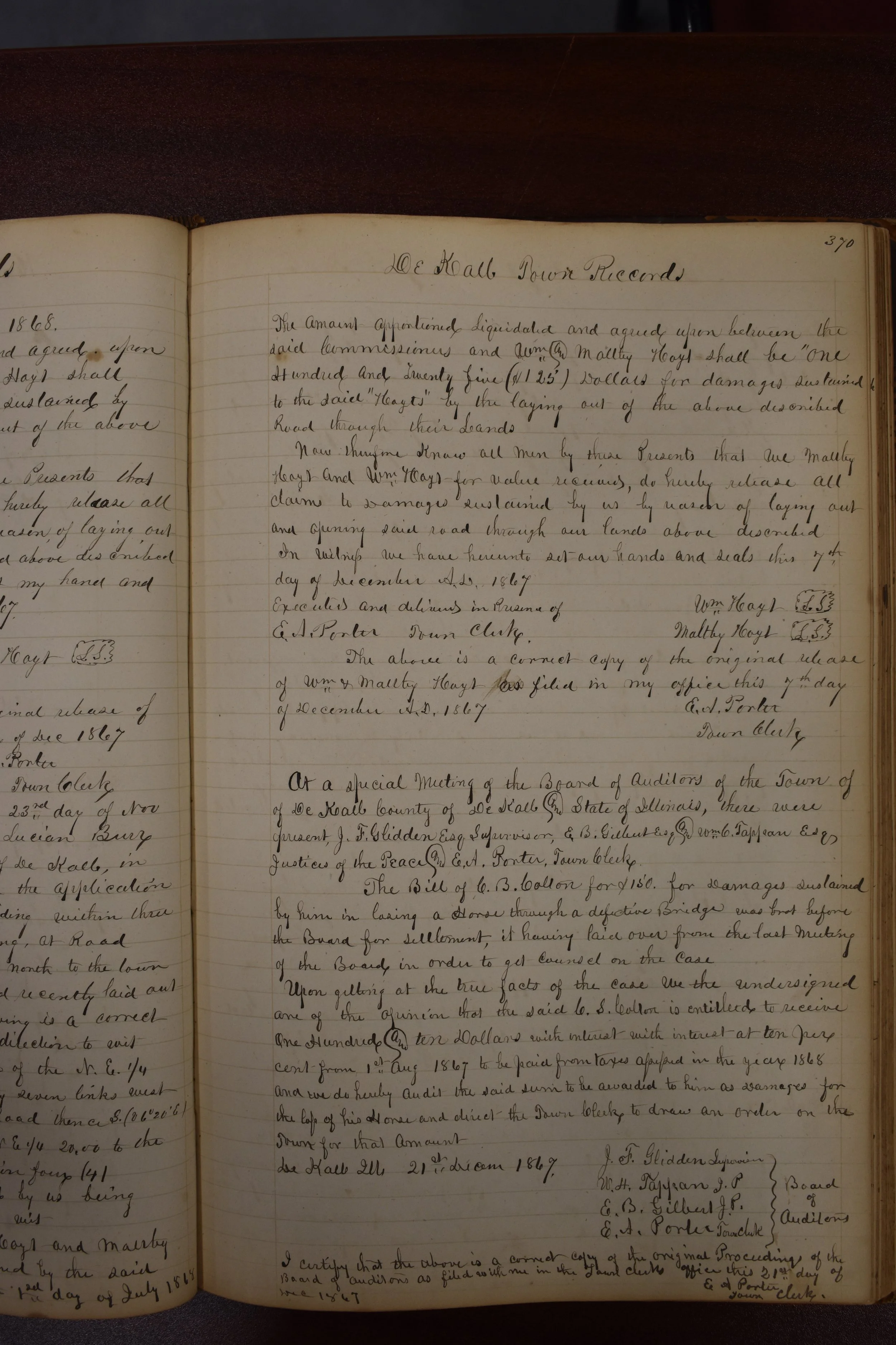 At a special meeting of the board of auditors of the town of DeKalb county of DeKalb and state of Illinois, there were present, J. F. Glidden Esq. Supervisor, E. B Gilbert Esq. and Wm. C. Tappan Esq., Justices of the Peach and E. A. Porter, Town Clerk